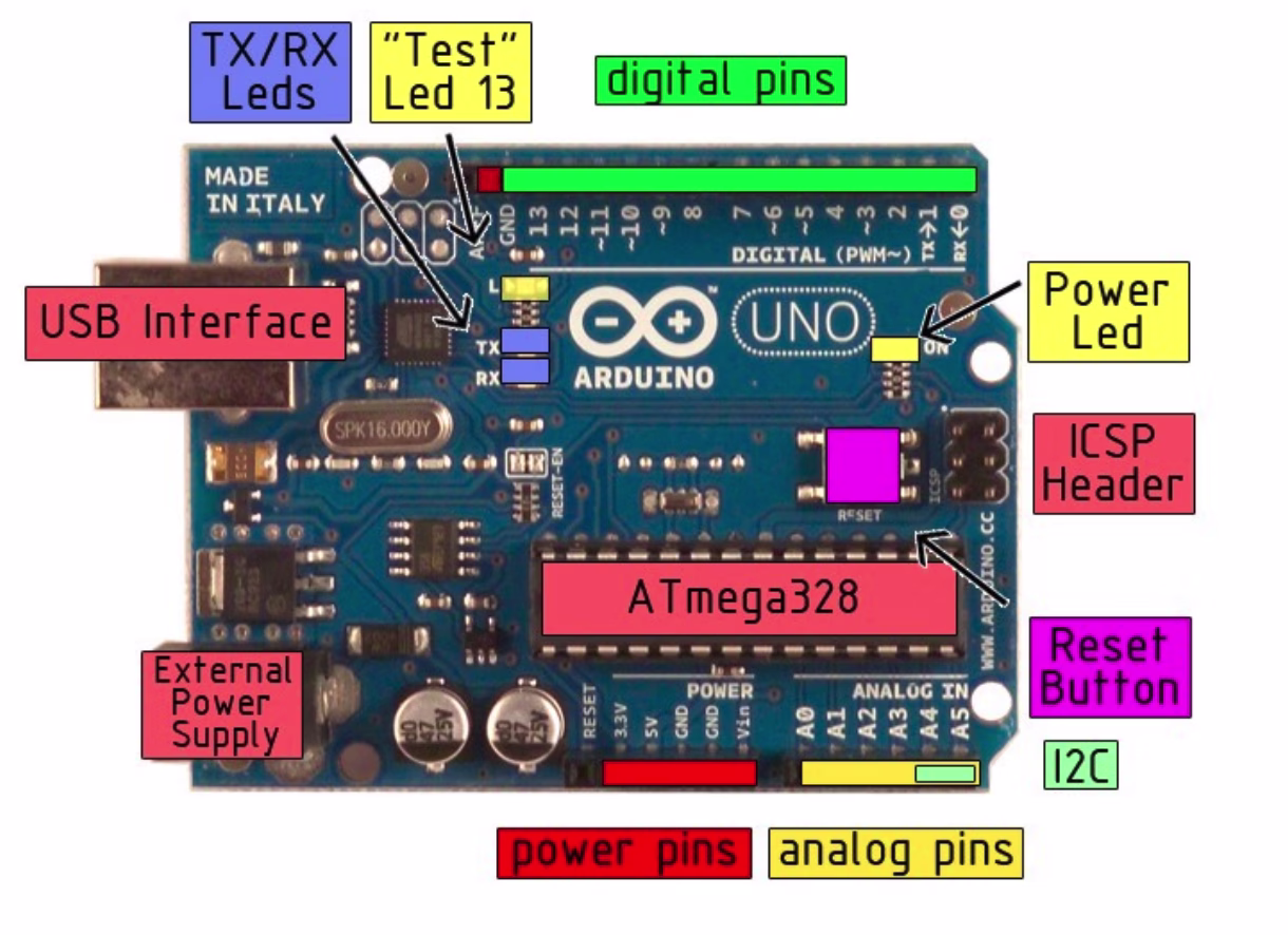 Arduino Uno est une carte microcontrôleur développée par Arduino.cc, basée sur le microcontrôleur Atmega328. Elle est considérée comme la première carte Arduino développée (UNO signifie « un » en italien).